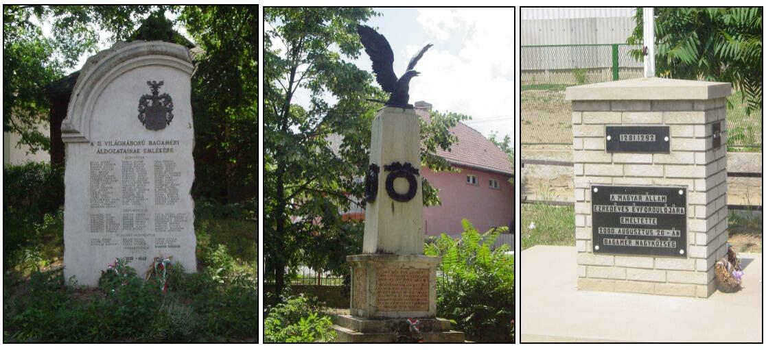 A település központjában emlékművek állnak. Az emlékművekkel a világháborúk áldozataira emlékeznek, valamint az államalapítás ezeréves évfordulója alkalmából 2000. augusztus 20-án egy zászlótartót állítottak fel, melyen elhelyezett márványtáblán emlékeznek az alkalomra.