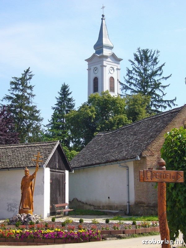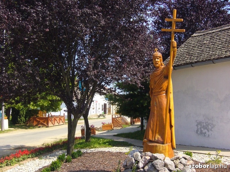 Államalapító első királyunk emlékére készült ez az életnagyságú alkotás. A tölgyfából faragott Szent István szobor Koltai László és Tyukodi László fafaragó mesterek alkotása.