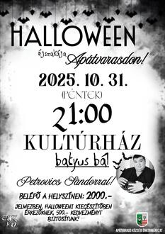 Halloween éjszakája a Kultúrházban - batyus bál fellépővel, jelmezt viselőknek belépőjegy kedvezménnyel.