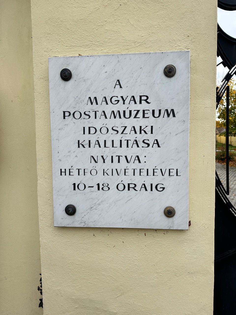 Április 15. – június 15. és szeptember 16. – október 15. között keddtől vasárnapig 10–16 óráig nyitva. Hétfőn zárva. ? Június 16. – szeptember 15. között keddtől vasárnapig 10–18 óráig nyitva. Hétfőn zárva. ?Október 16. és április 14. között (téli időszak) zárva.