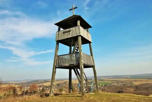 A Széll-kilátóról belátható a hatalmas határ egy része, de a falu például teljességében a lábunk alatt hever.