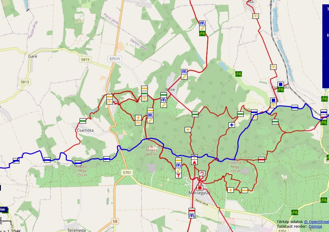 Tenkes gerinc–Csukma-hegy környéki jelzett utak