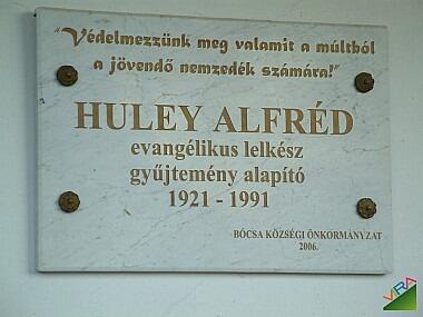 A nevezetes helytörténeti gyűjteményt Huley Alfréd evangélikus lelkész alapította. Emlékére a tájház falán 2006. augusztus 19-én emléktábla került elhelyezésre.