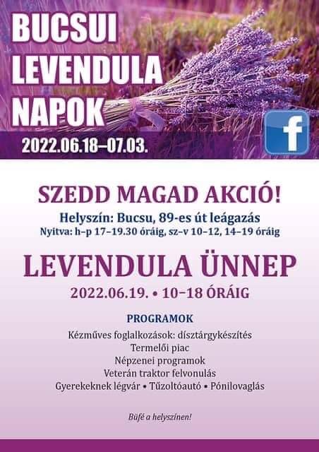A Bucsui Levendula Napok egy évente megrendezett esemény, amely a helyi levendulamezőn zajlik. A program része a levendulaszedés, levendulás lekvár főzése, kézműves foglalkozások, termelői piac, népzenei programok, esti levendula piknik és népzenei produkciók.